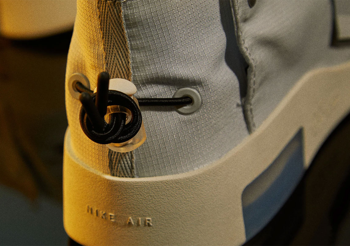 Air Fear of God Raid 致敬经典的 Air Raid 系列,在鞋面加入了双绑带设计。浅灰色鞋面,以优质皮革和尼龙材质打造。