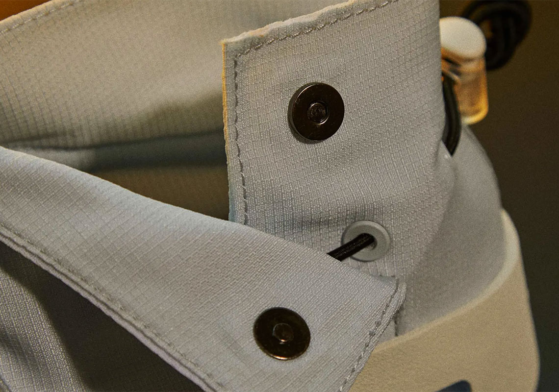 鞋帮按扣式固定,辅以松紧带式调节,比 Air Fear of God 1 拉链穿脱更为便捷。