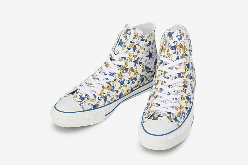 以低帮版本的 Converse All Star 为蓝本,将唐老鸭标志性造型融入鞋面。