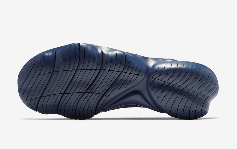 整体采用藏蓝色的网面,搭配绿色、粉色作为点缀,鞋头和脚踝处的 Swooth 采用了鸳鸯撞色的设计,鞋底的设计将前后掌高低差方面进一步减小,切割纹理也更密集,更加贴近赤足跑。