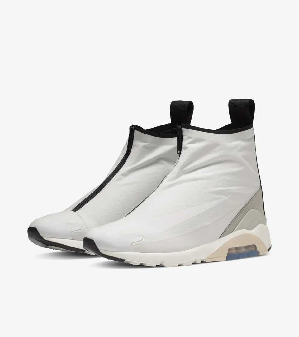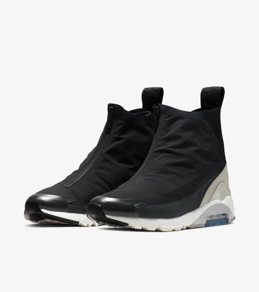 设计彻底颠覆了 Air Max 180 的经典造型,加入了全新的双层鞋面,夸张的靴式造型,融入拉链设计,机能风气质尽显无疑,融入穿搭中还带有浓郁的高街感。