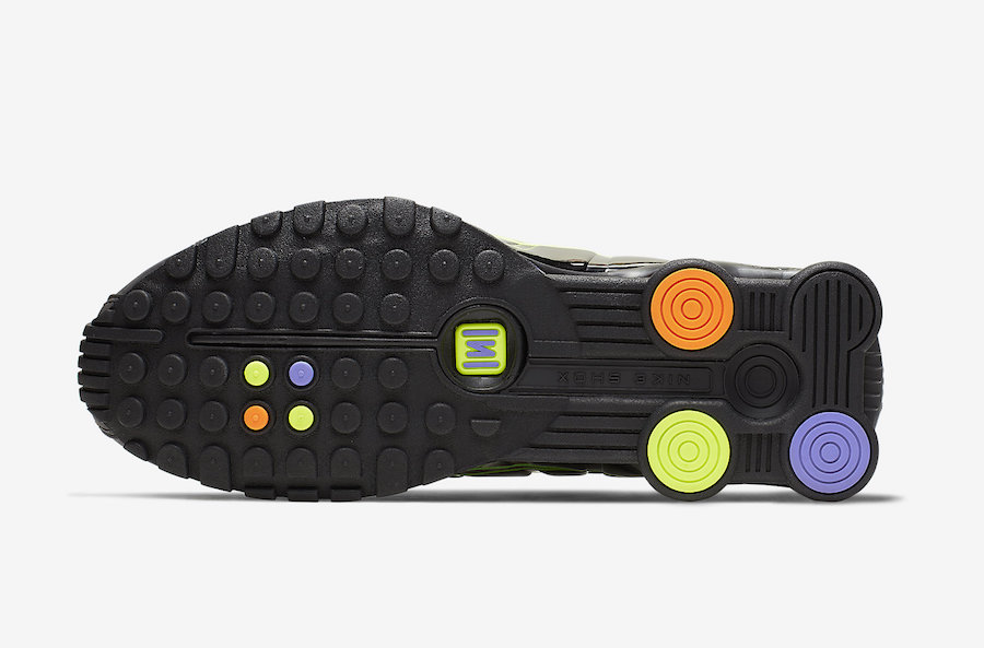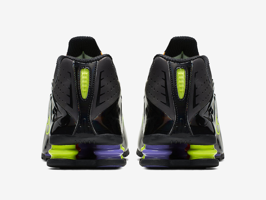 作为经典的运动鞋款之一,此次回归它依旧采用经典黑色皮革鞋面。但与往常不同的是,在侧面添加了彩虹色全息覆面,并以荧光黄勾勒出 Swoosh 标志。气柱更是首次出现了多种颜色,同时采用了亮橙色、荧光绿、亮紫色的搭配,一改曾经色彩较单一的风格,更加丰富了外观。