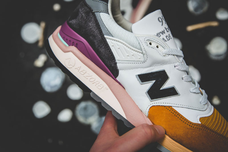 还有一款 New Balance 998 用了更加稳重的杏黄、紫和碳灰的配色方案。