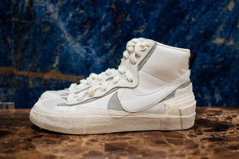 日本时装品牌 Sacai 与 Nike 以解构为设计主线,推出的 LDV Waffle 和 Blazer Mid 联名新品,绝对算是近期的鞋王。