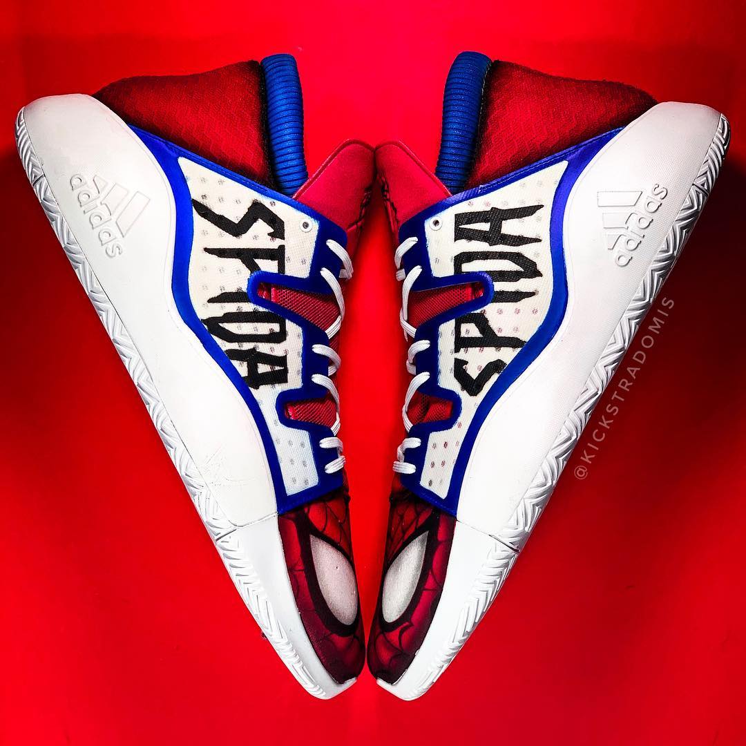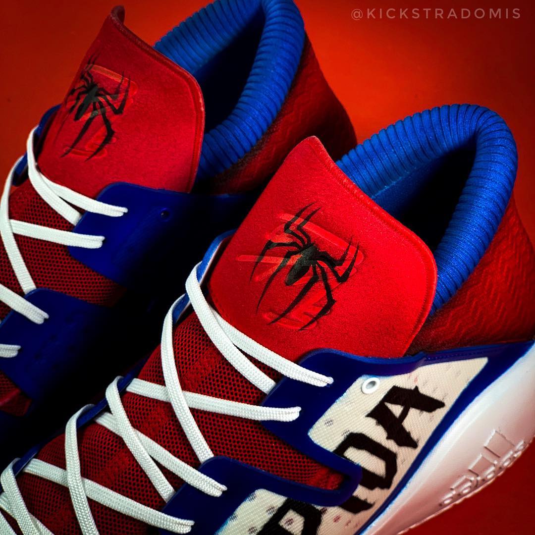 Kickstradomis 就为米歇尔打造了一款蜘蛛侠配色的 adidas Pro Vision,鞋头的大眼睛相当传神,侧面的 Spida 既代表米歇尔又象征蜘蛛侠。
