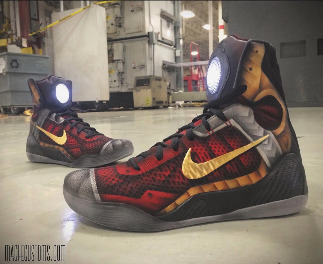 mache275 和 sierato 都以钢铁侠战甲为灵感打造鞋款,金属质感的红金涂装霸气十足,mache275 更是加入灯效模仿反应堆设计。