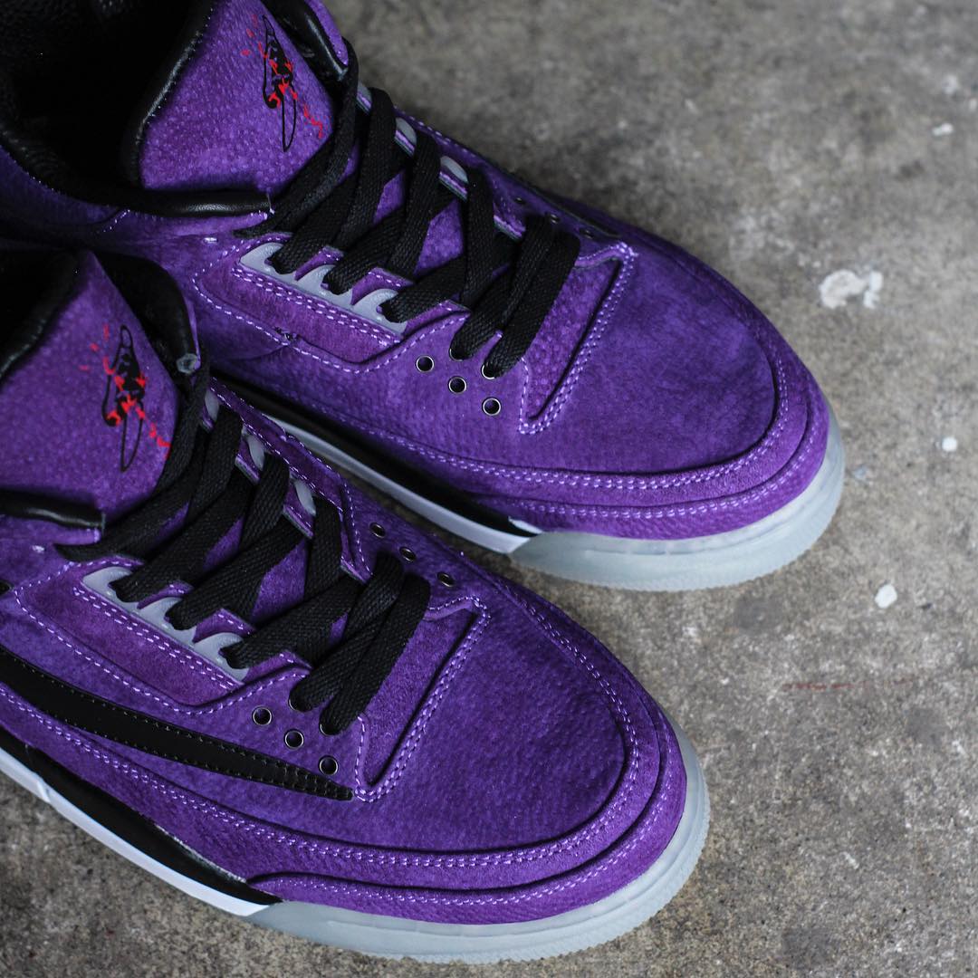 曾打造过 OFF-WHITE x Air Jordan 11 的 j.theripper 也有自己的反勾鞋款。不过他也并没有局限于 Air Jordan 1 鞋型,而是选择将反勾融入 Air Jordan 3。