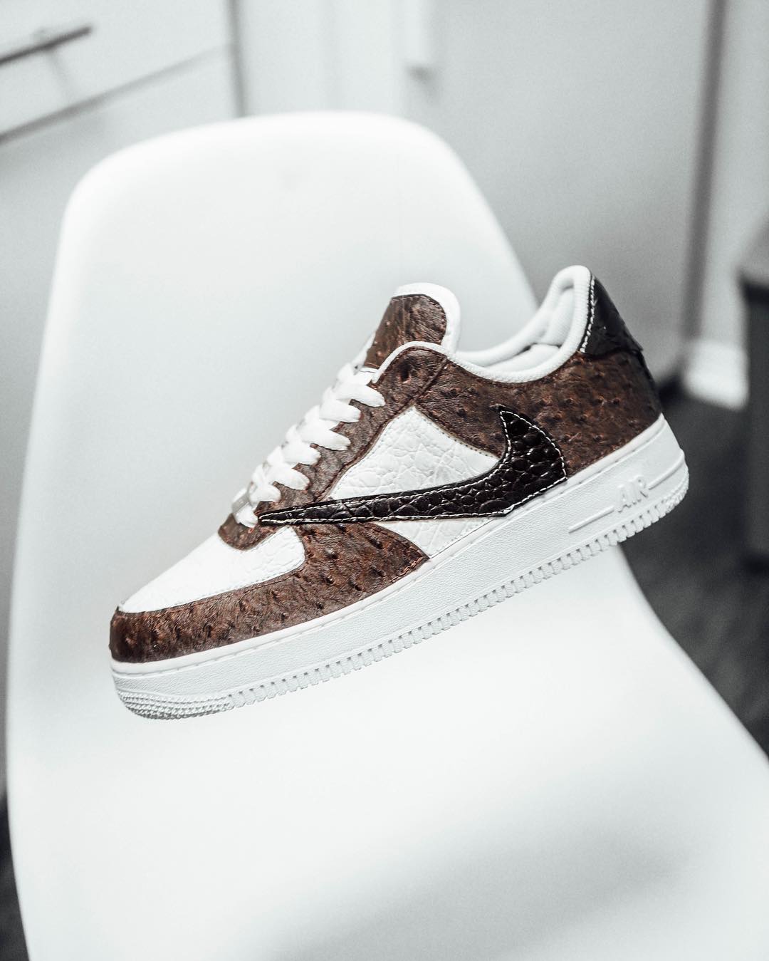 The Shoe Surgeon 还为 Travis Scott 的巡回演唱会专门打造过反勾 Air Jordan 1 鞋款。