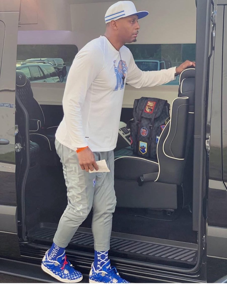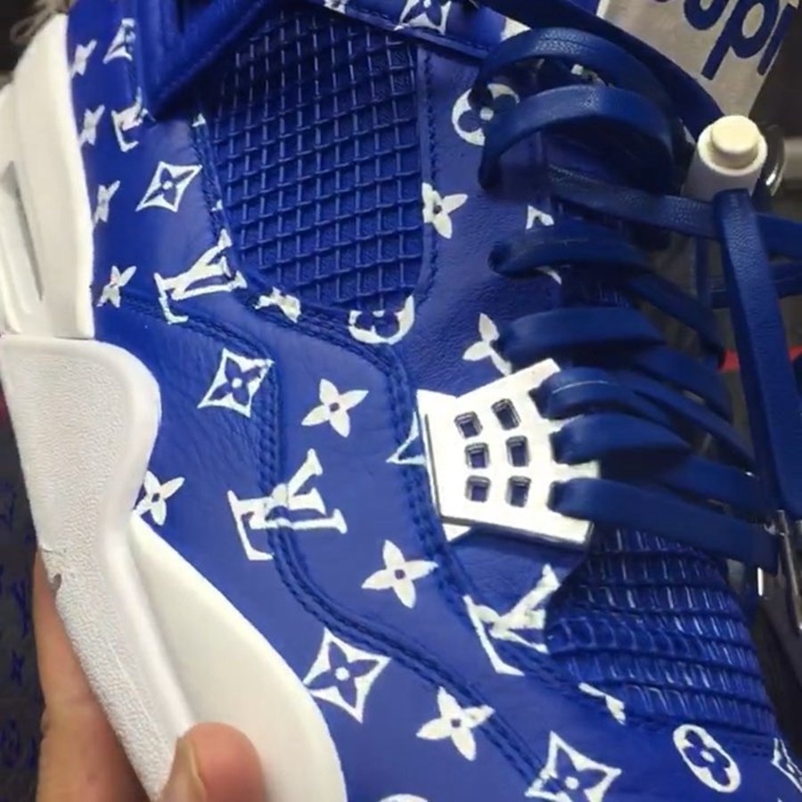 奢侈品牌 LV 和街头品牌 Supreme 合作的每件单品都因货量稀少被炒到很高价格,近日一款定制 Air Jordan 4 将三方融合,并由著名球星便士哈达威上脚曝光。