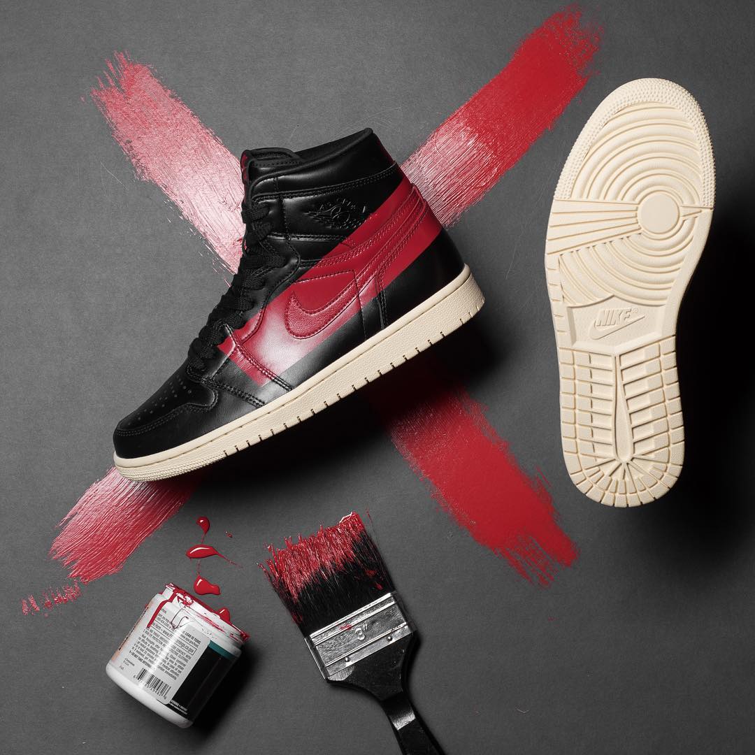 这双鞋的诞生是为了致敬当年禁穿 Air Jordan 1 的广告,不仅有经典的黑红配色,鞋身外侧醒目的红色油漆条更是整双鞋最吸睛的一处设计。