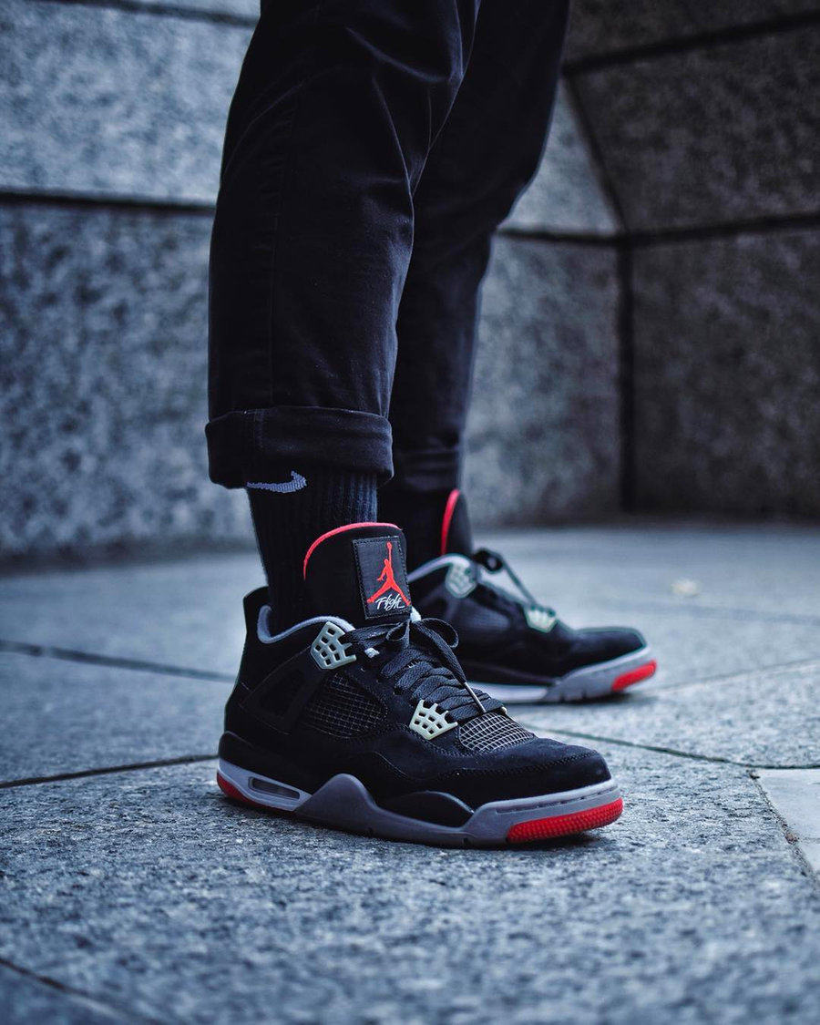 对于像 Air Jordan 4 “BRED” 这种经典鞋款 + 黑红配色的组合,上脚随意百搭。