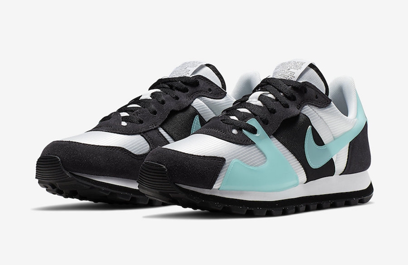 白色网眼鞋面搭配黑色麂皮鞋面,Tiffany 蓝配色的 Swoosh Logo 一直连接到后跟上,如此清爽的颜色配比非常适合夏日穿搭,同时搭载华夫格鞋底,使整双鞋具有浓郁的复古气息,