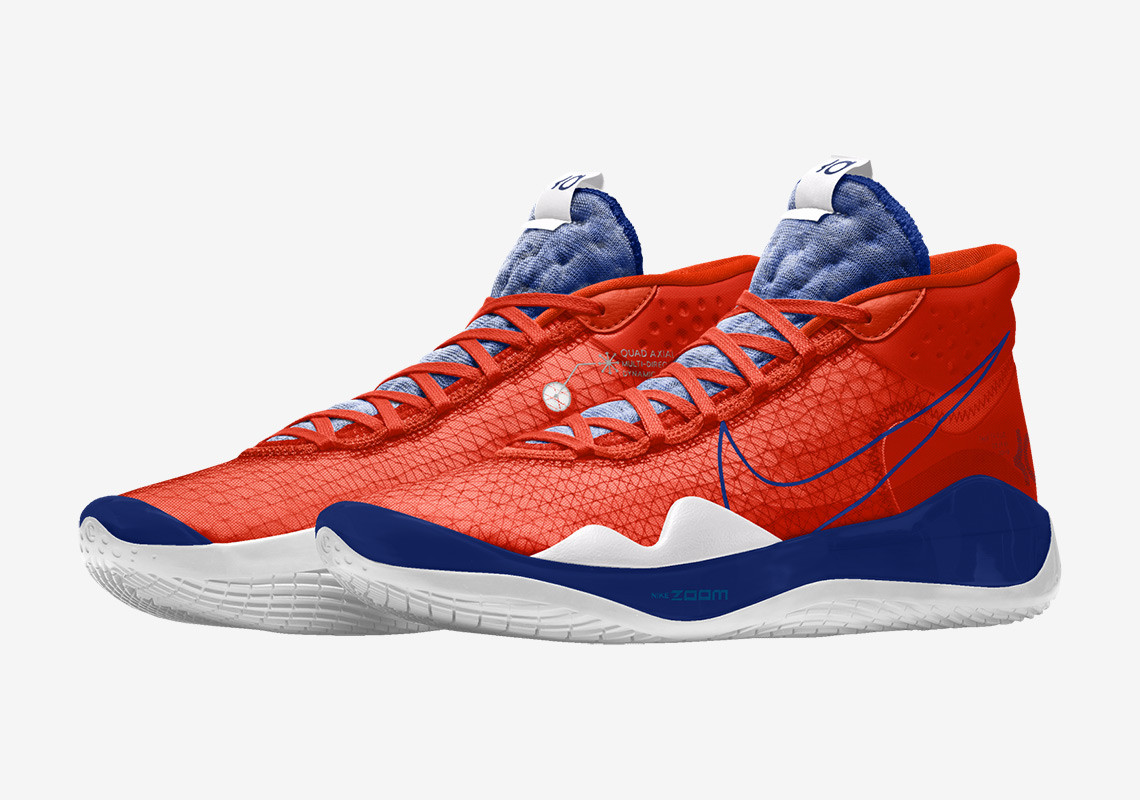 伴随着凯文·杜兰特在比赛中的亮眼表现,Nike 也开启了他的个人签名战靴 KD12 的官网定制通道。曾经大家所熟悉的 NIKEiD 功能,现已改为 Nike By You。