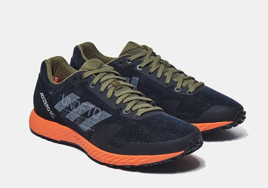 其中一双以 adidas adizero 为设计蓝本,鞋款采用黑色网面设计,搭配橙色中底,辅以军绿色细节点缀,外侧印有 adidas Logo,内侧印有 UNDEFEATED Logo,彰显身份的特殊。