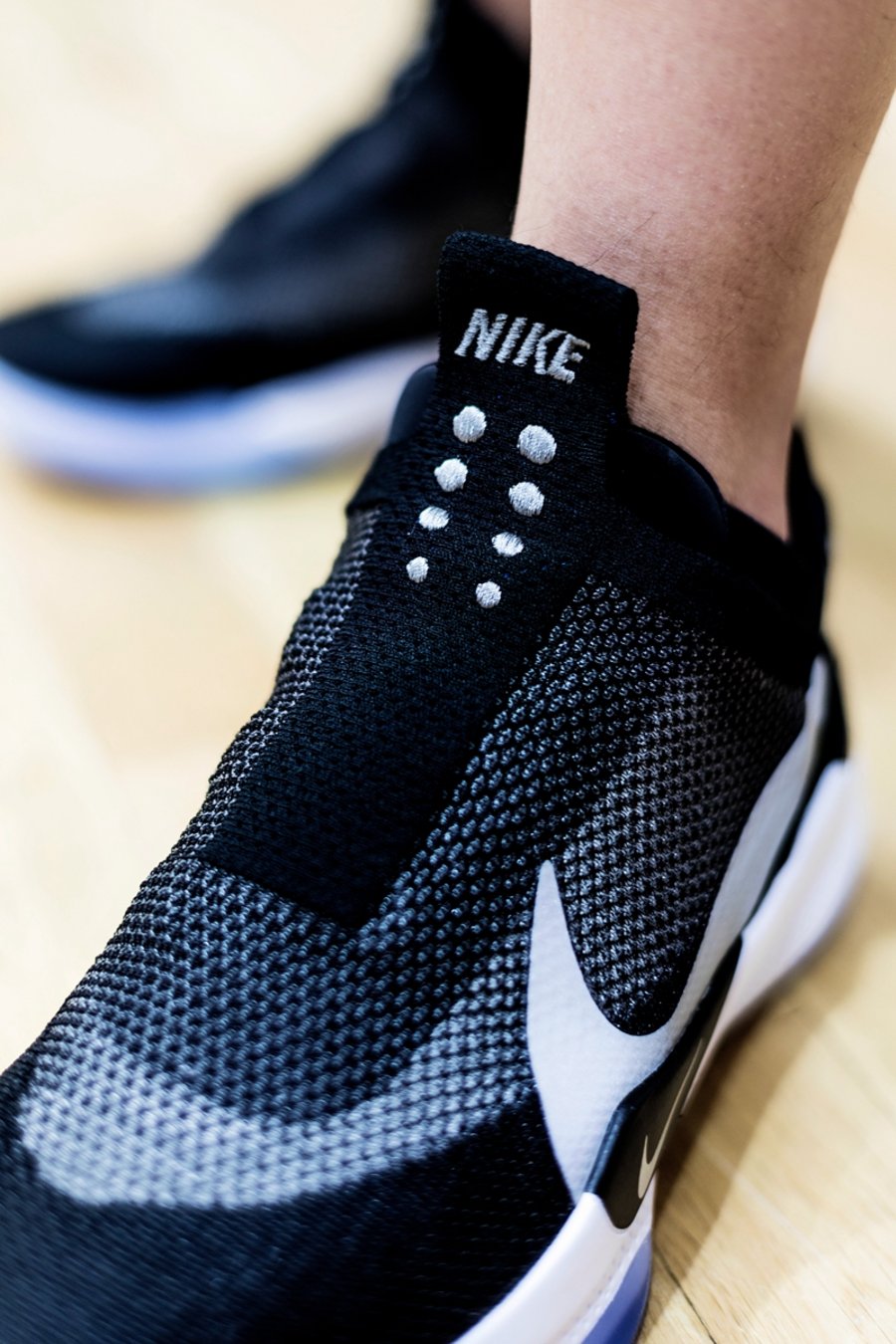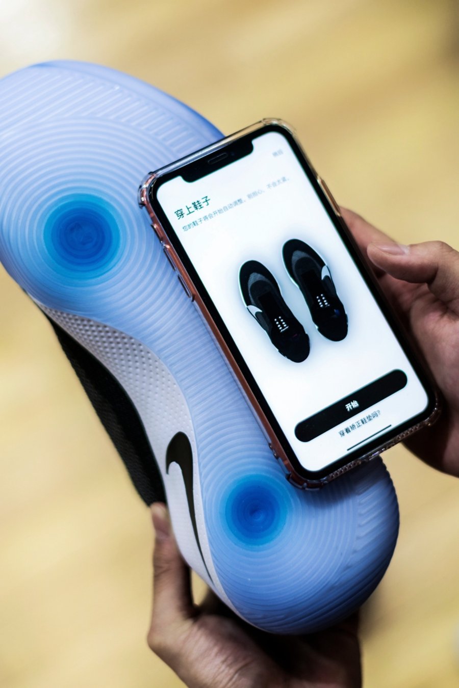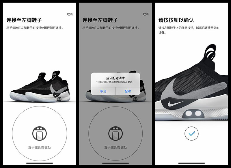 然后就可以根据手机程序的提示,让 Adapt BB 进行自动系带的微调,从而适合每个人左、右两只鞋的不同松紧。