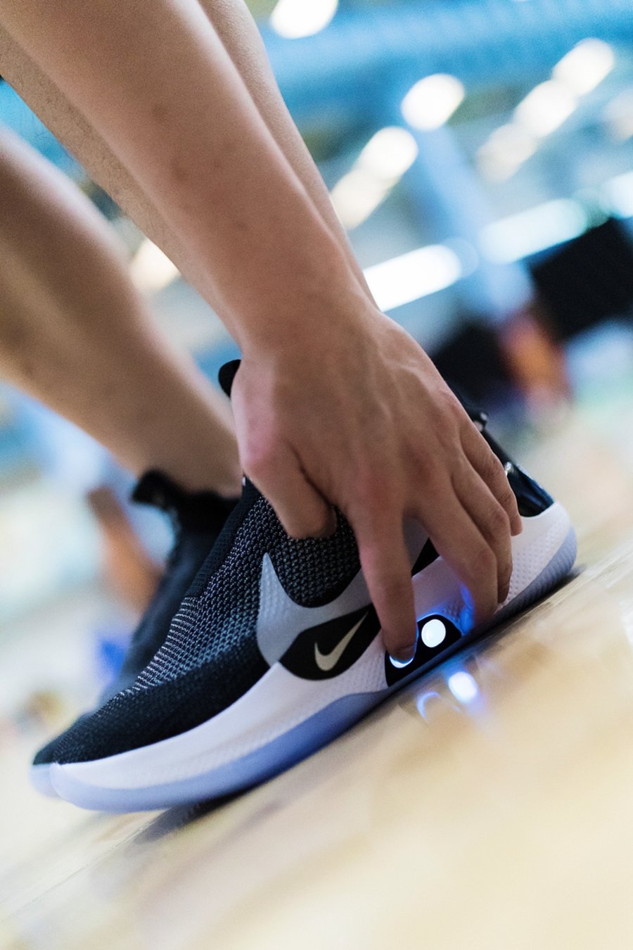 初次上脚都想体验下自动系带的松紧调节效果,挺好玩也挺上瘾。