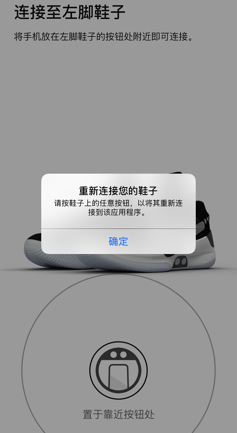 如果在匹配过程中,出现了下面这个画面。有可能是因为这双鞋已经同其他的手机设备进行了绑定,所以当你再次匹配的时候,就无法继续。
