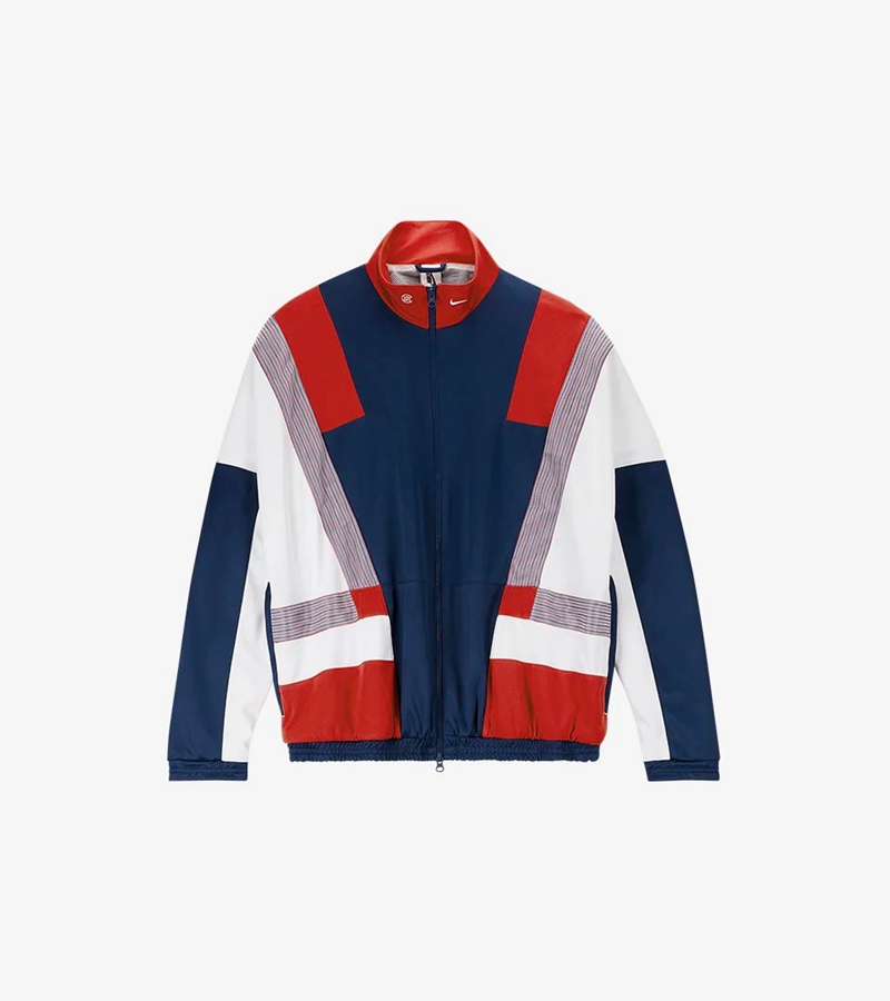 球鞋采用白色网面为主调,细节再以红、蓝双色交织示人。中底及鞋垫处点缀的 CLOT Logo 彰显联名身份,成为点睛之笔。