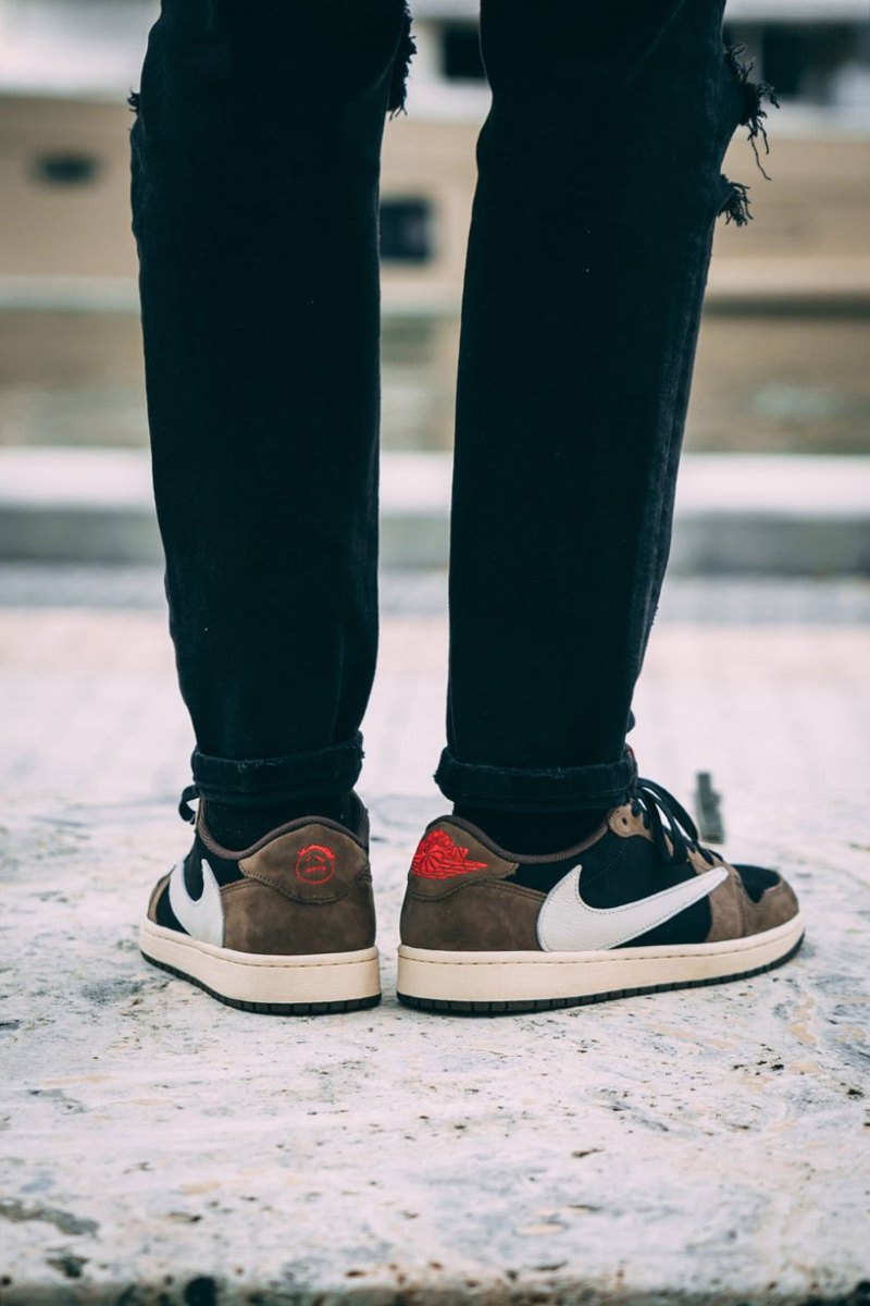 球鞋内侧的 “Cactus Jack” 厂牌字样、后跟的鬼脸图案、鞋垫上的 Travis Scott 字样,这些细节都在为这双年度鞋王加分。