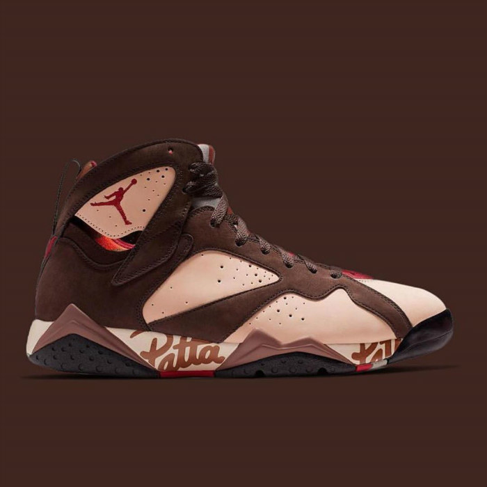 采用 Patta 标志性的棕色勾勒 Air Jordan 7 鞋身轮廓,细腻的磨砂皮革质感相当出色,搭配酒红色内靴营造满满的华丽气息!