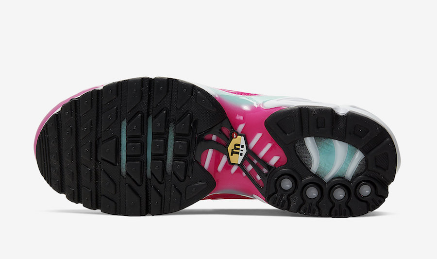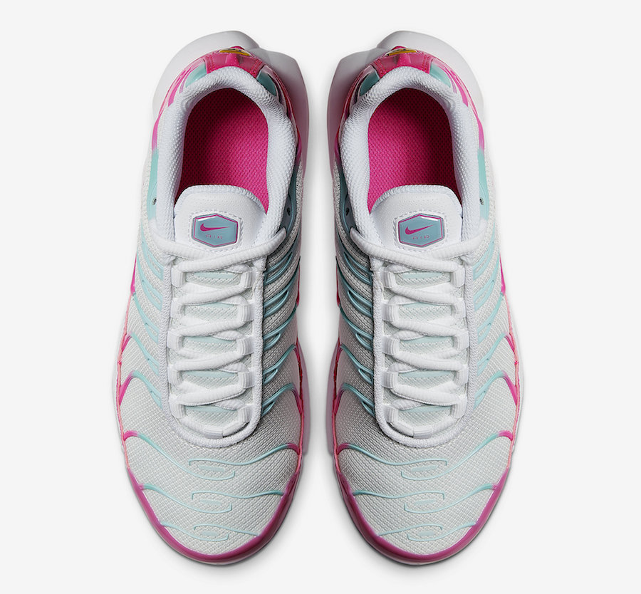 这双 Air Max Plus 采用南海岸配色设计,青色与粉色的经典搭配重新出现,为炎炎夏日带来一丝清凉。