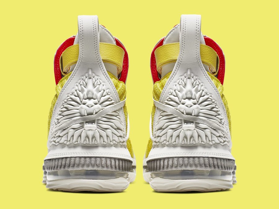 白色后跟,带有质感超强的狮子浮雕。乳白色外底,搭配银色中底与 LeBron Logo,配置依旧华丽。