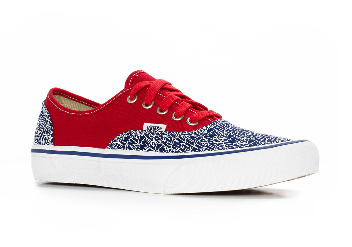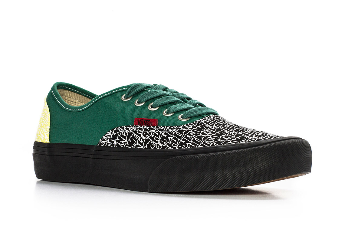 此次联名选用专业滑板鞋型 Vans Authentic C Pro,鞋头及后跟带有标志性的满印字体设计,带来 5 款风格迥异的配色。