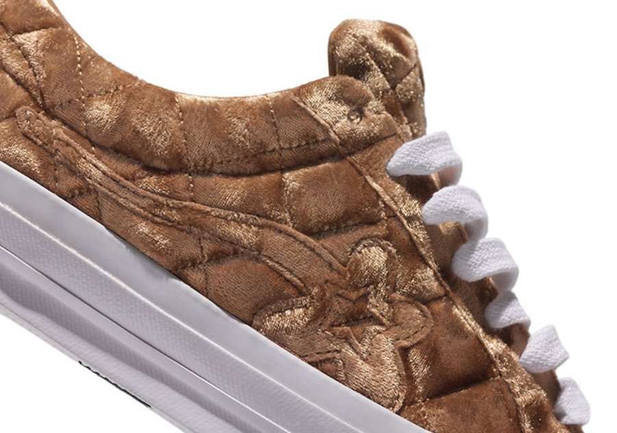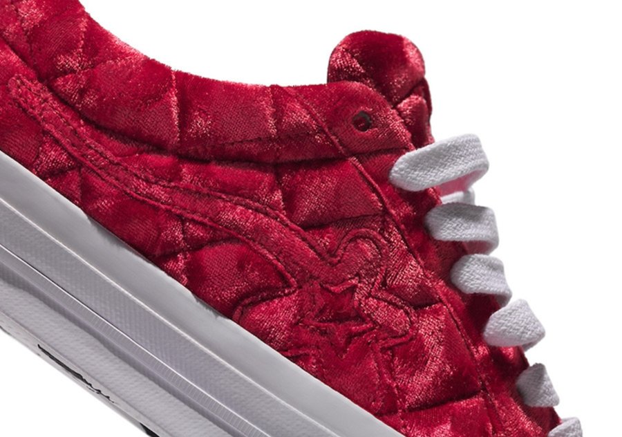 本次系列采用 One Star 和 Chuck 70 两种鞋型,不同以往的帆布、麂皮鞋面,本次设计使用天鹅绒材质制作鞋身,搭配菱形格纹设计,材质高端特别,彰显不凡气质。