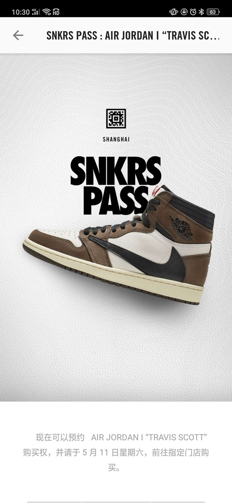 今天上午 10:07 左右,SNKRS APP 上线了 Travis Scott x Air Jordan 1 上海 SNKRS PASS 页面。上海的小伙伴有人抢到了吗?