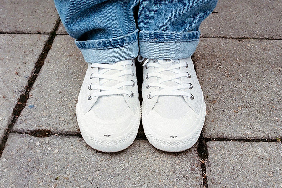 整体鞋面色调以乳白为主,搭配纯白色的鞋带与中底,使整体色调不单调。