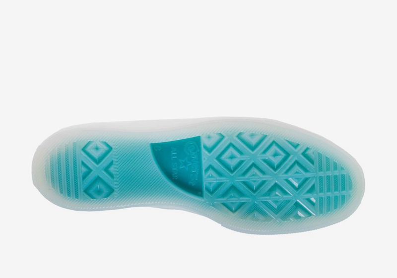外底采用类似 Off WHITE × Converse 初代的透明设计,还露出淡蓝色橡胶,设计新颖独特,对于想要与众不同的小伙伴来说,绝对是非常好的选择