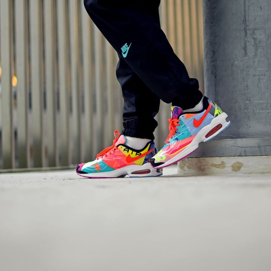 著名球鞋店铺 atmos 再次携手 Nike,以 90 年代的 Nike 运动服装为灵感,打造这双「拼布」效果的球鞋。