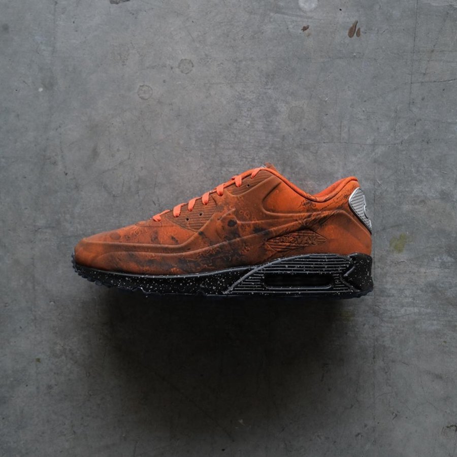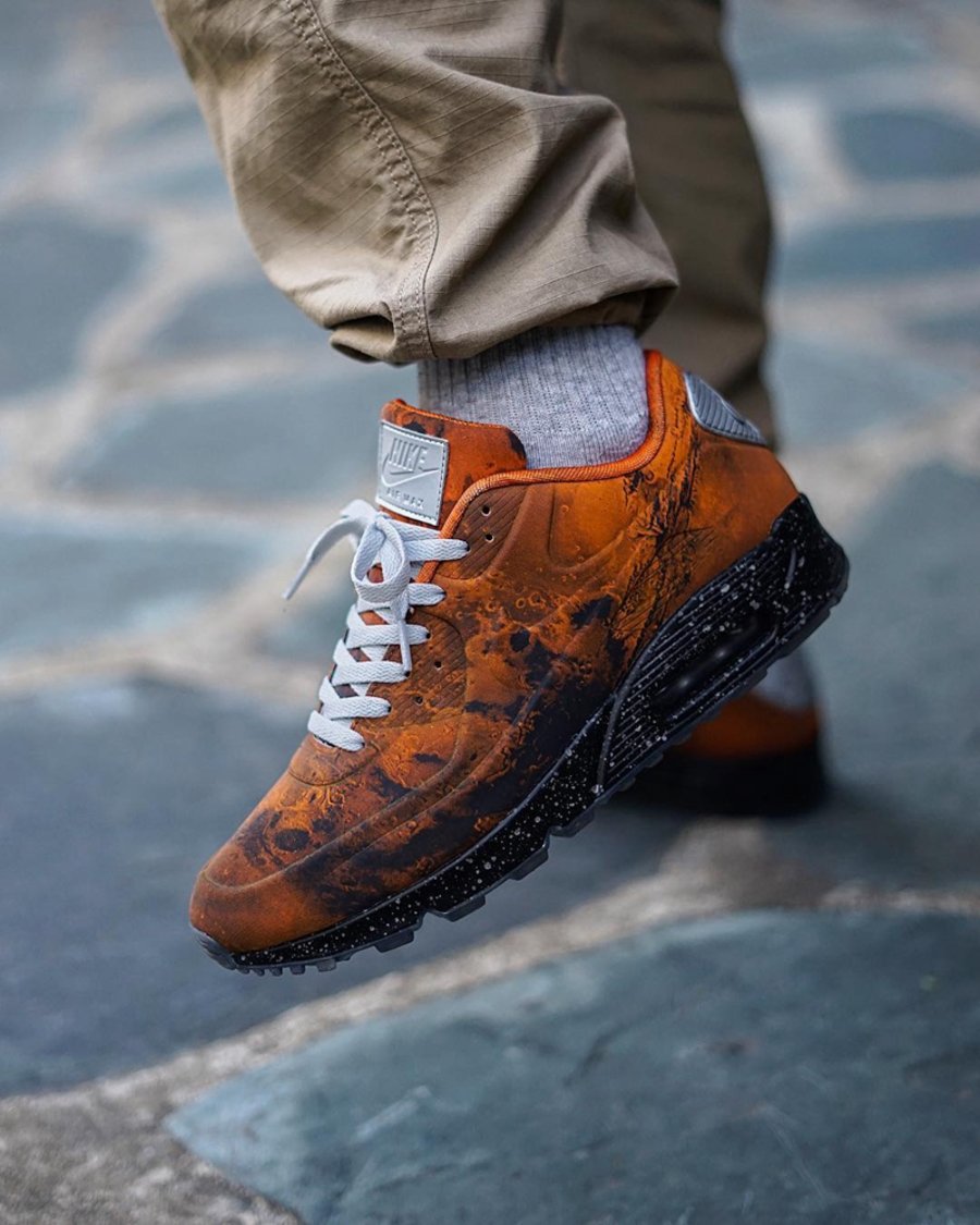 以航空主题为配色灵感,鞋面通过红色的火星表面呈现,黑色中底点缀泼墨细节,鞋舌与后跟的银色带来科幻前卫的感觉。