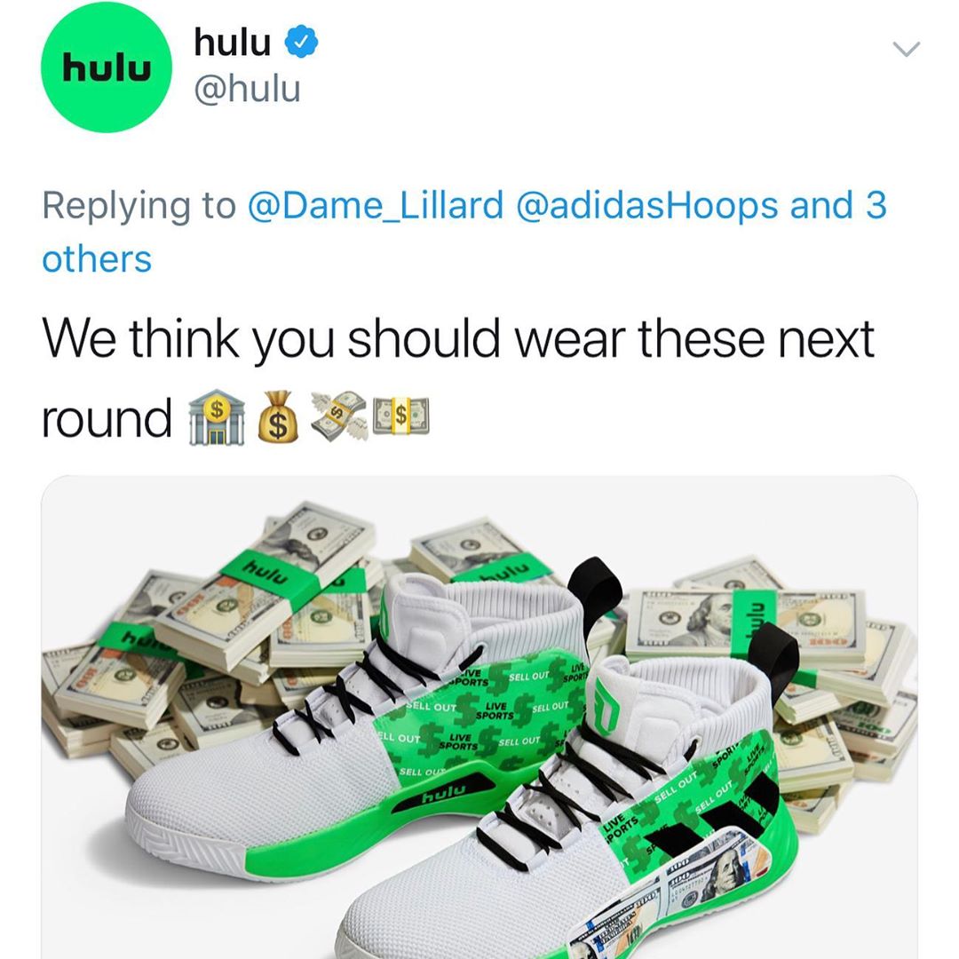 直播网站 hulu 与利拉德等 NBA 球星都有紧密合作,利指导曾经拍摄过身着绿色球衣撒钱的广告,令人印象深刻。