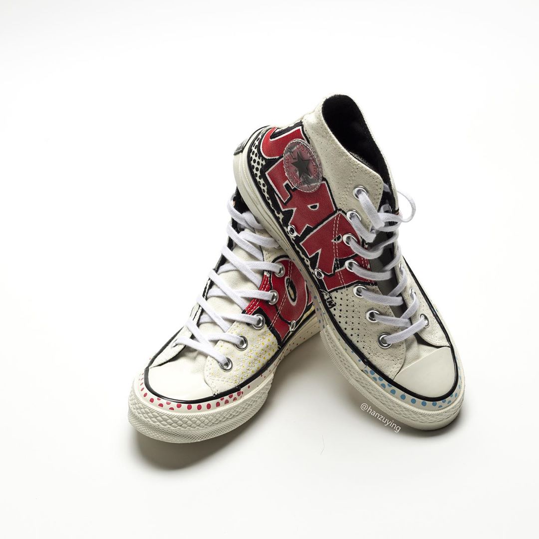 内侧的经典 Converse 圆形 Logo 则采用透明材质设计,避免遮盖鞋面图案的同时,更加提升了外观的颜值。