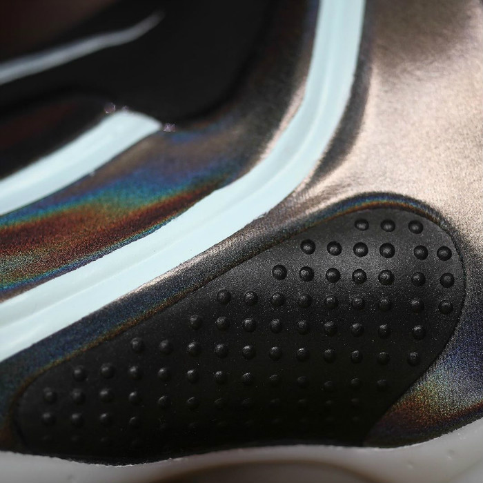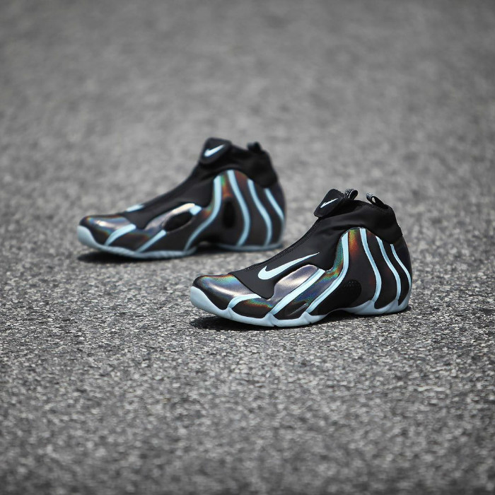 眼前这款 Nike Air Flightposite One 风一新品再次以格外讨好的「全息」装扮呈现,光泽效果变化莫测的全息发泡质感,让人着迷。