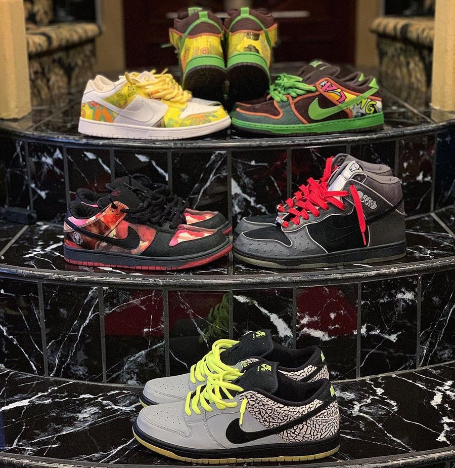 玩球鞋的大神一定都有 Dunk 收藏。作为曾经制霸球鞋圈的存在,Nike Dunk SB 系列中的天价配色实在是太多太多,而 Kenny 似乎全都有。
