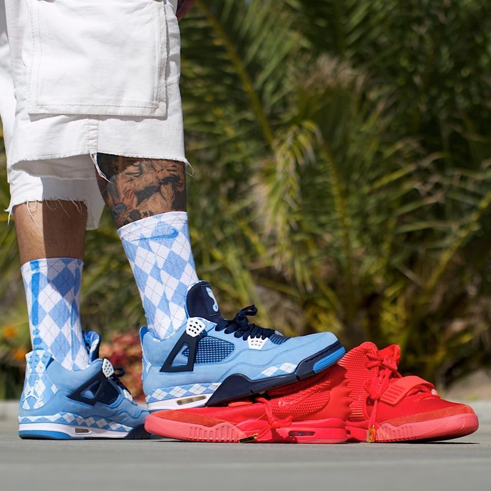 更早的纯种北卡 Air Jordan 4 那是绝对的神物,有资格把红椰子 Nike Air Yeezy 2 踩成这样...
