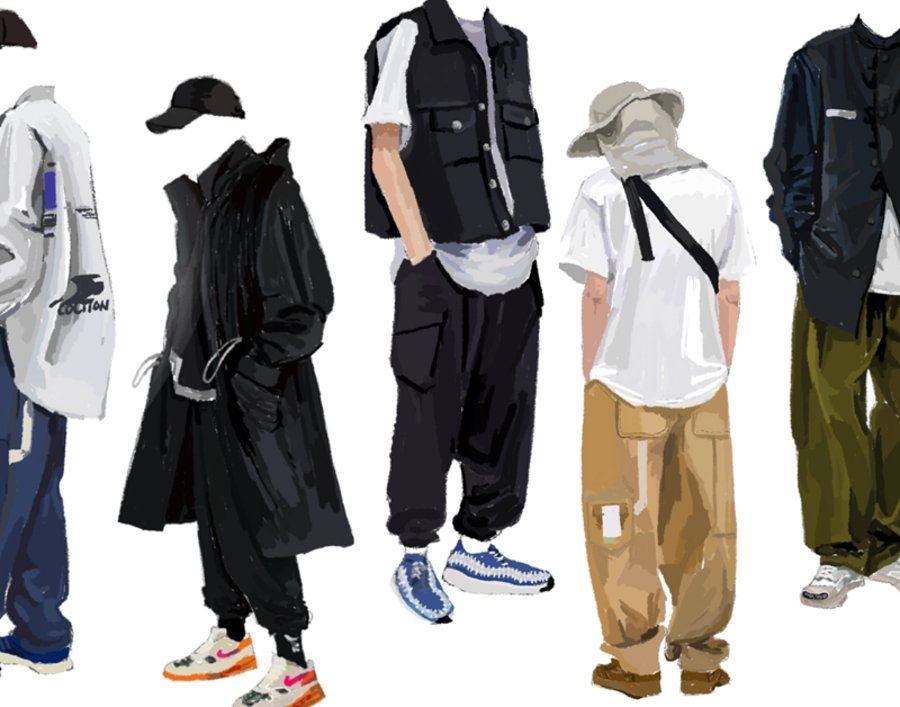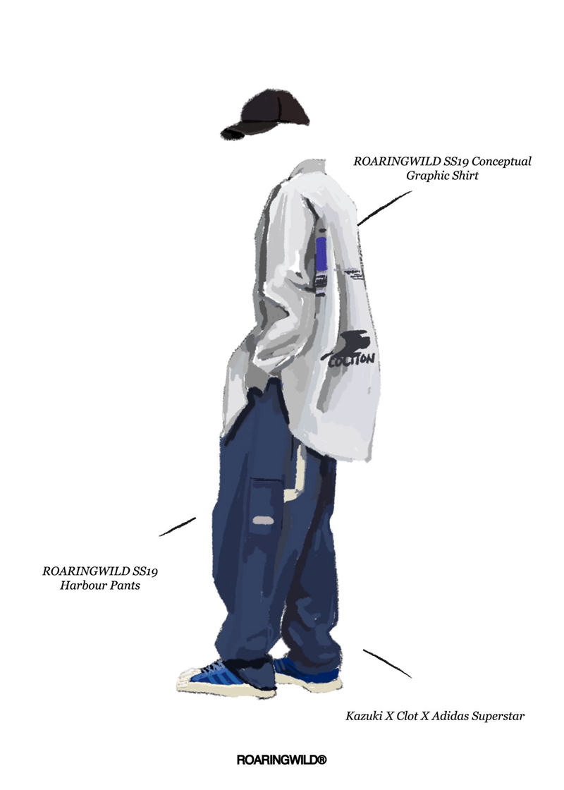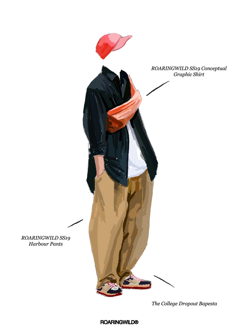 在这六双经典联名鞋款的手绘搭配呈现上,所选择的裤款是两款属于 ROARINGWILD 的定番常青款-六袋工装裤/锥形哈珀工装裤,圆 LJC 了一个至今未能穿上它们的梦。