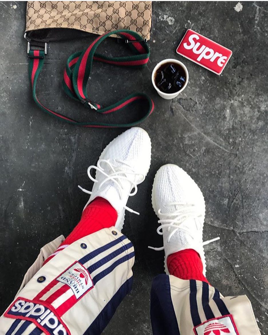 除了三款彩色油漆条,白色条的奥利奥配色也在 Yeezy 中地位颇高。