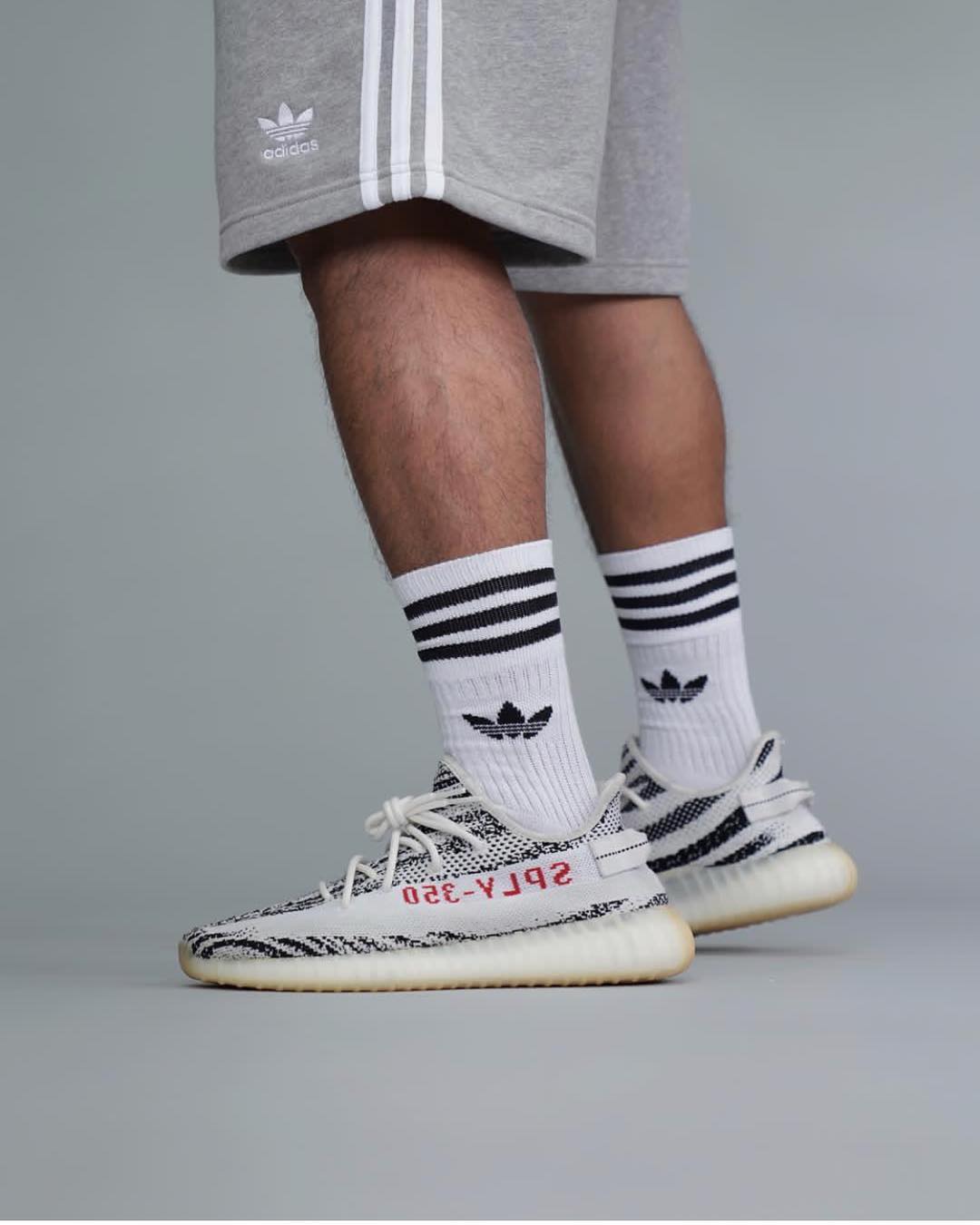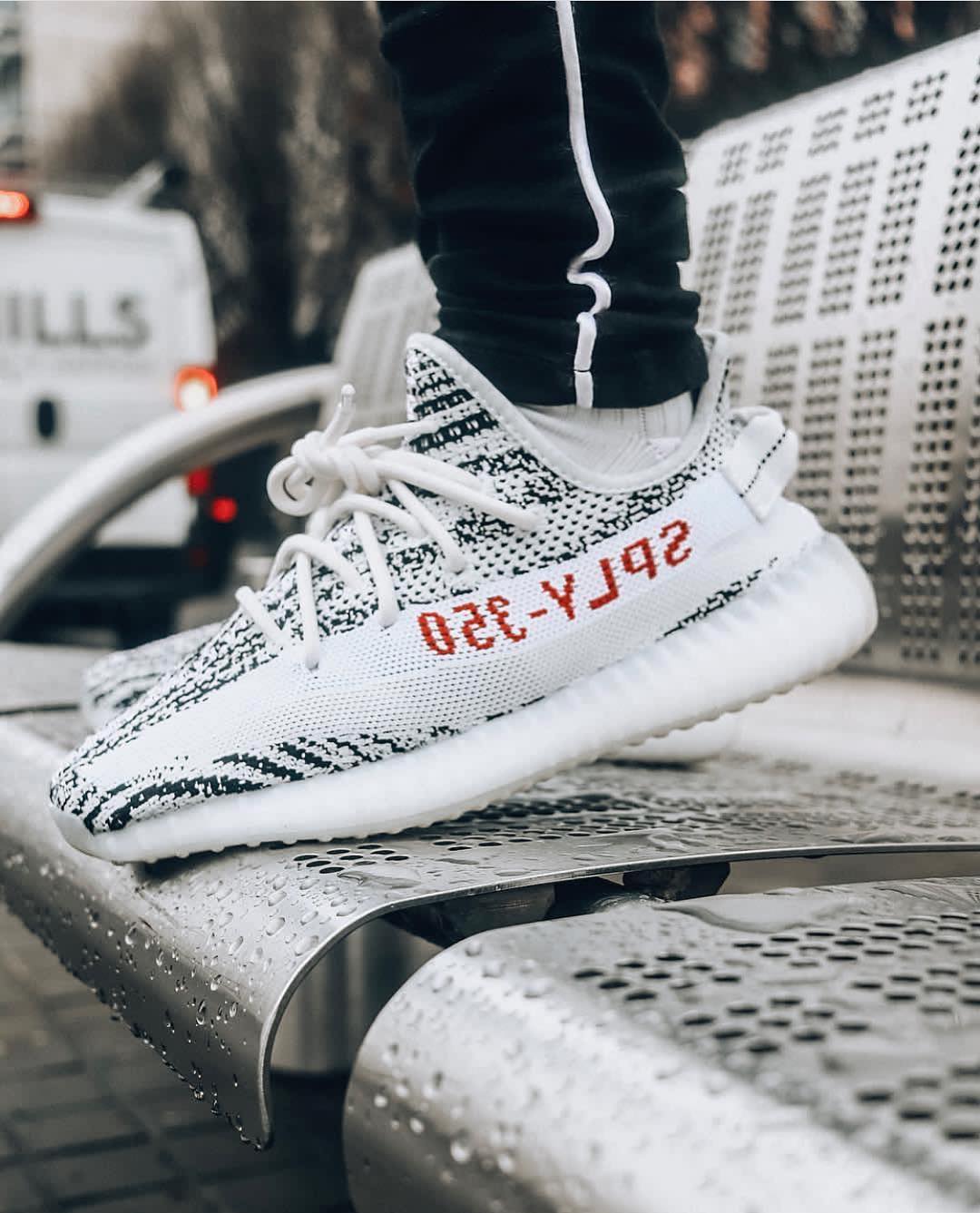 曾经天价的白斑马配色也是 Yeezy 系列中的标志鞋款,拥有最鲜明的斑马纹设计,上脚辨识度极高。