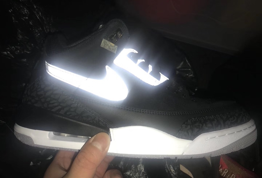 近日又有一款 Air Jordan 3 Tinker 黑水泥配色现身网络,还带有炫目的反光元素。