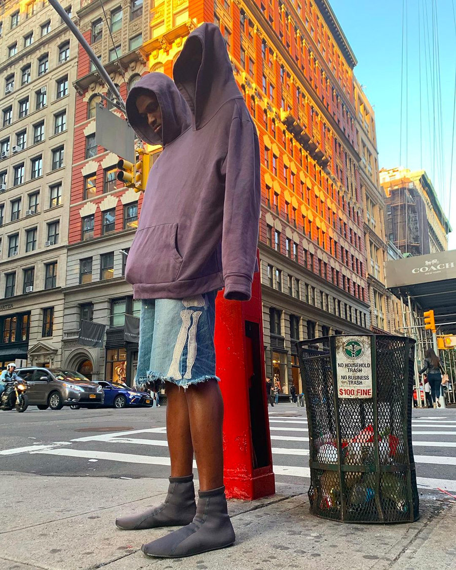 除了侃爷的亲着演示,ins 用户 soberyungwalter 也带来了自己的街拍新照,脚上穿的正是这双 Yeezy 新鞋。