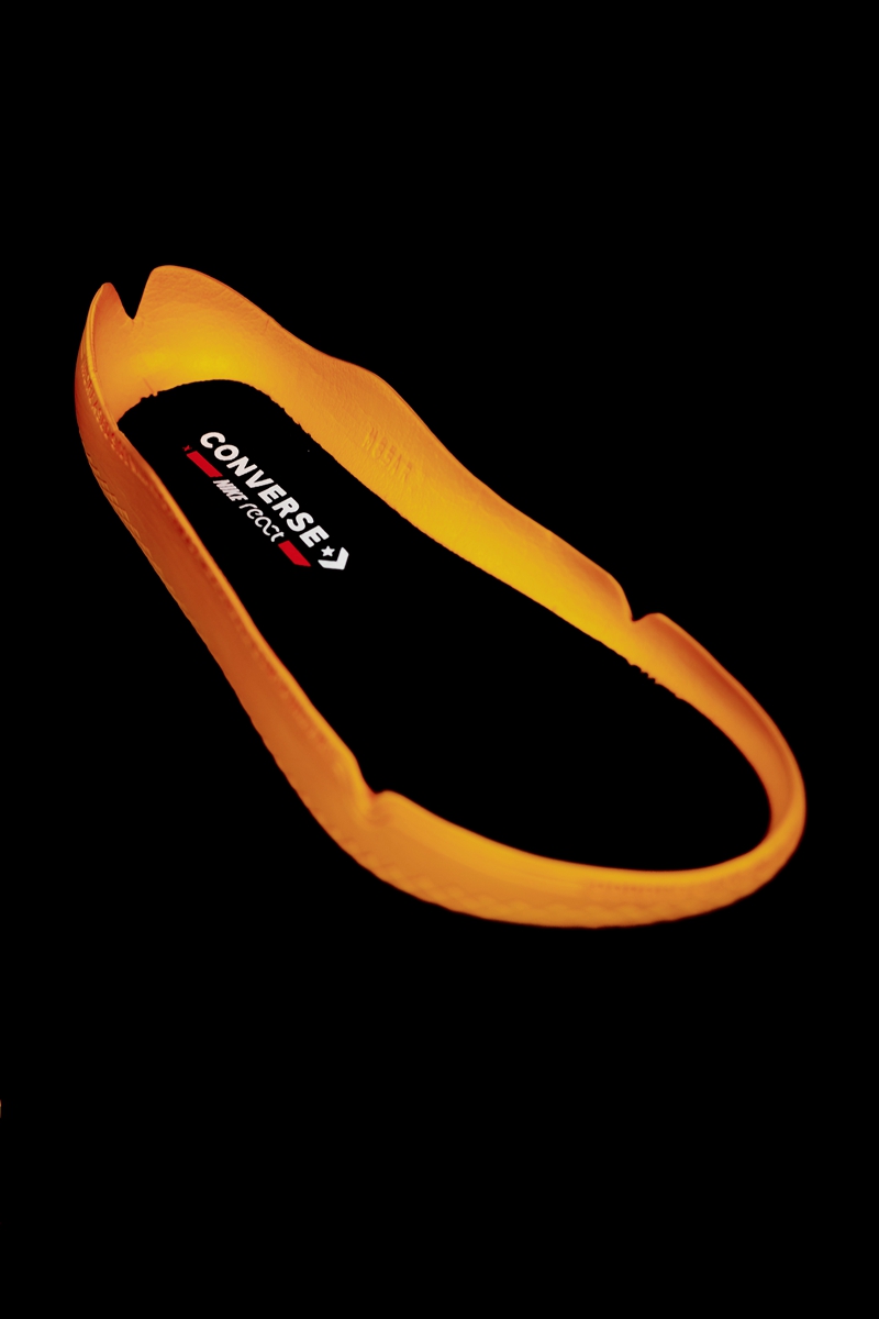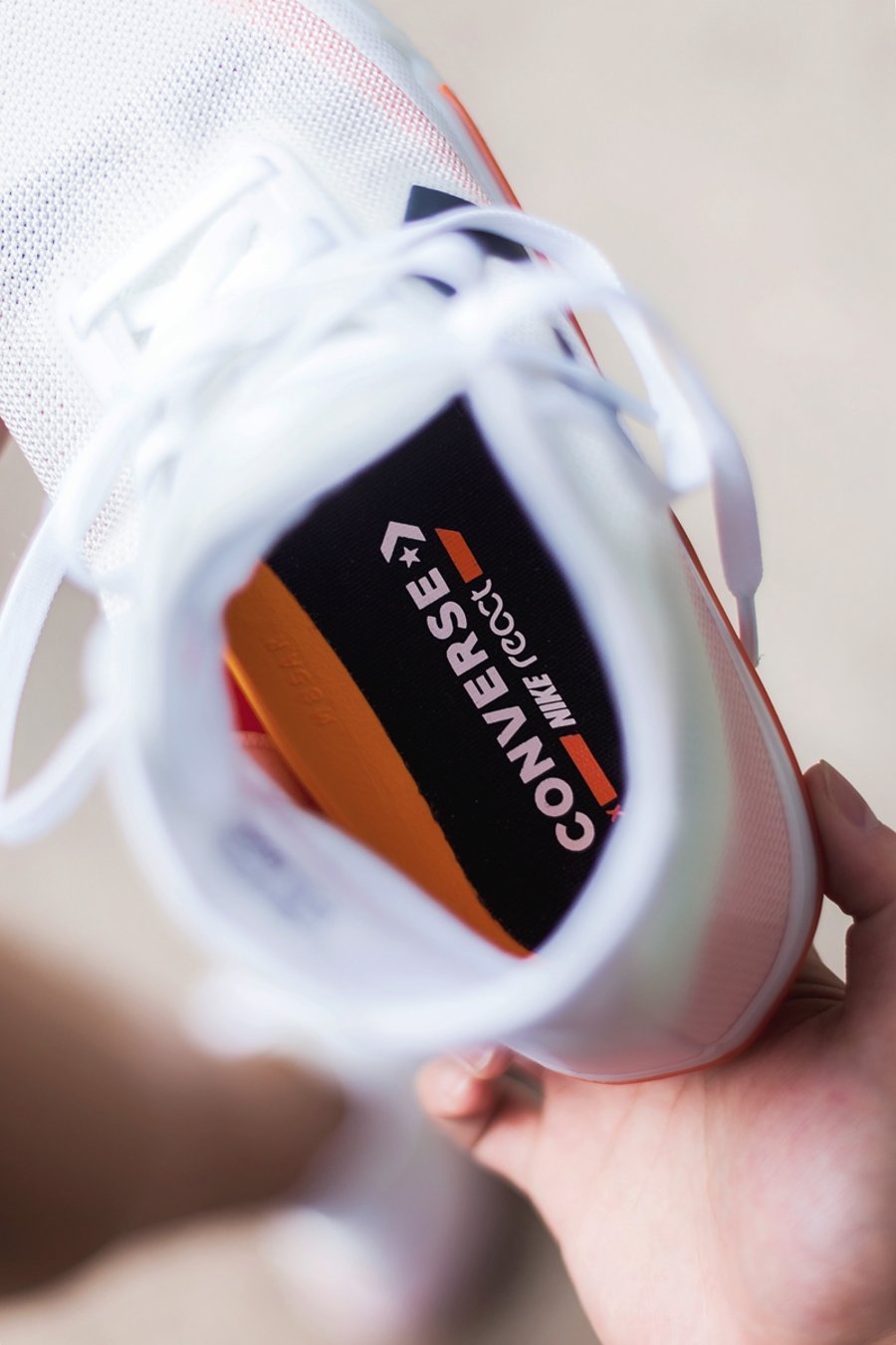 鞋垫与双脚接触的表现,采用提升摩擦力的绒布设计,并在常规的 Converse 文字下方,标注有 Nike React 字样,彰显着双方的强强联手!