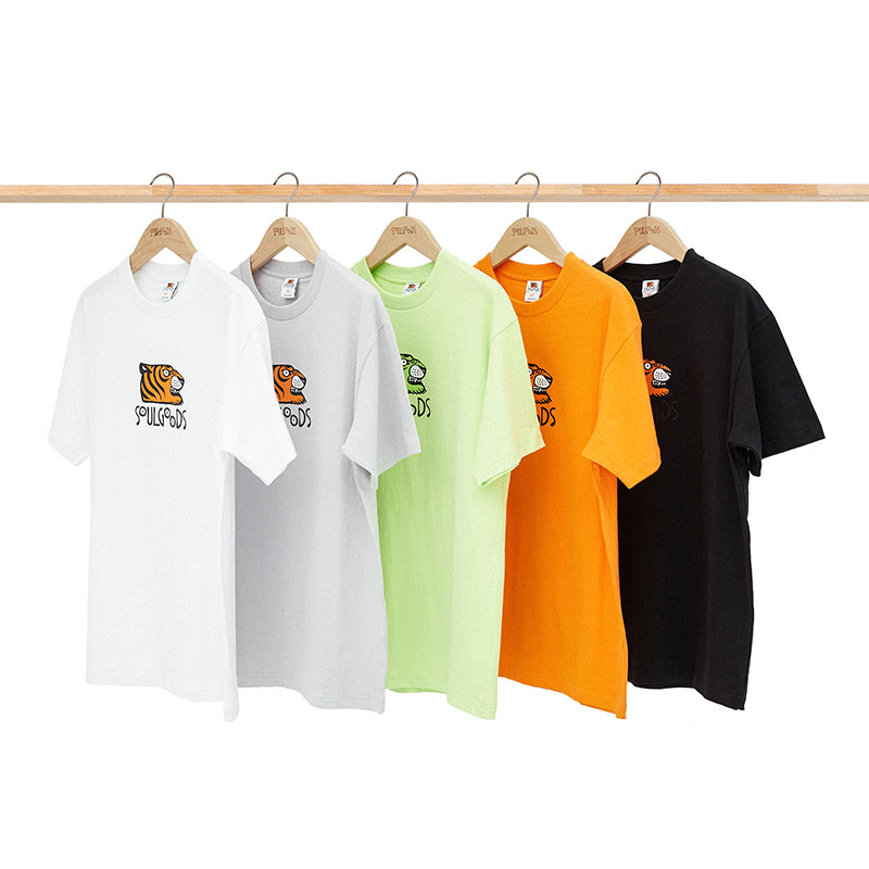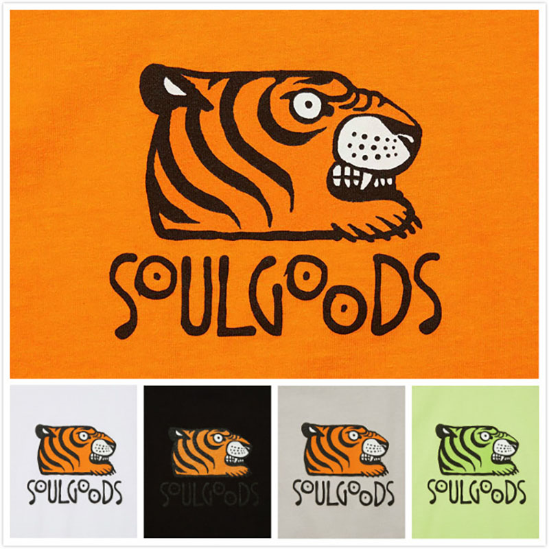在本轮单品中,SOULGOODS 虎头 LOGO T-Shirt 将以首发的黑、白及橙色回归,并注入灰、绿两款全新色彩元素。