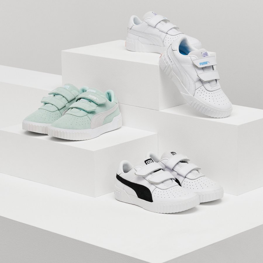 第三款鞋型 SG x Cali 选用优质皮革材质作为鞋面,鞋身侧面辅以 PUMA Logo 点缀,用双粘贴扣设计代替鞋带,让穿脱变得更加方便,同时也提升不少时尚感。