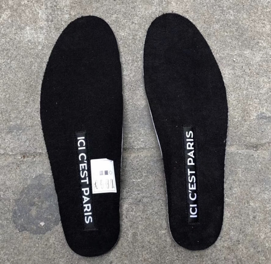 鞋垫印有 ICI C'EST PARIS,意为 “这就是巴黎”,为大巴黎助威。