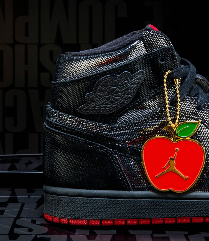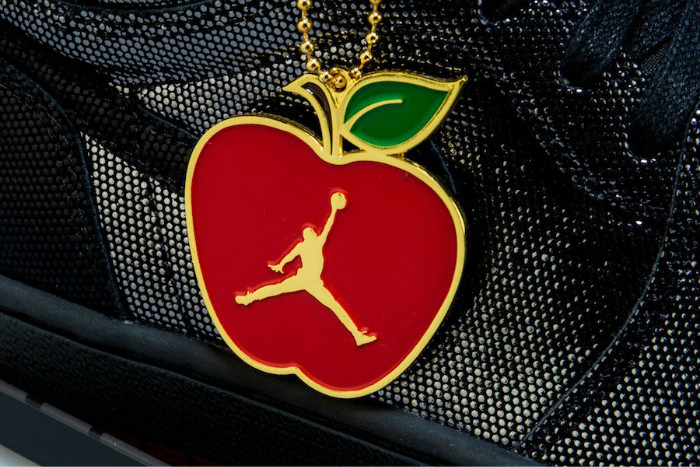 除此之外,鞋身还配有专属苹果造型 Jumpman 吊牌,精致且华丽。