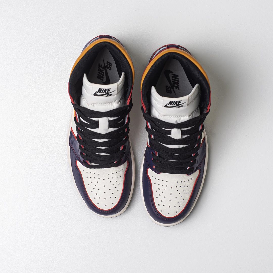 设计上与 Air Jordan 1 没有明显区别,但细节中还是与经典的 Air Jordan 1 有几处细微差别,比如鞋舌上醒目的 Nike SB Logo 和鞋垫背面加入的 Zoom 气垫。