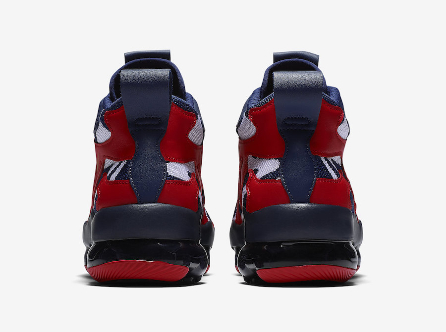 这双鞋以蓝、红为主色调,尼龙鞋面搭配细腻皮革。